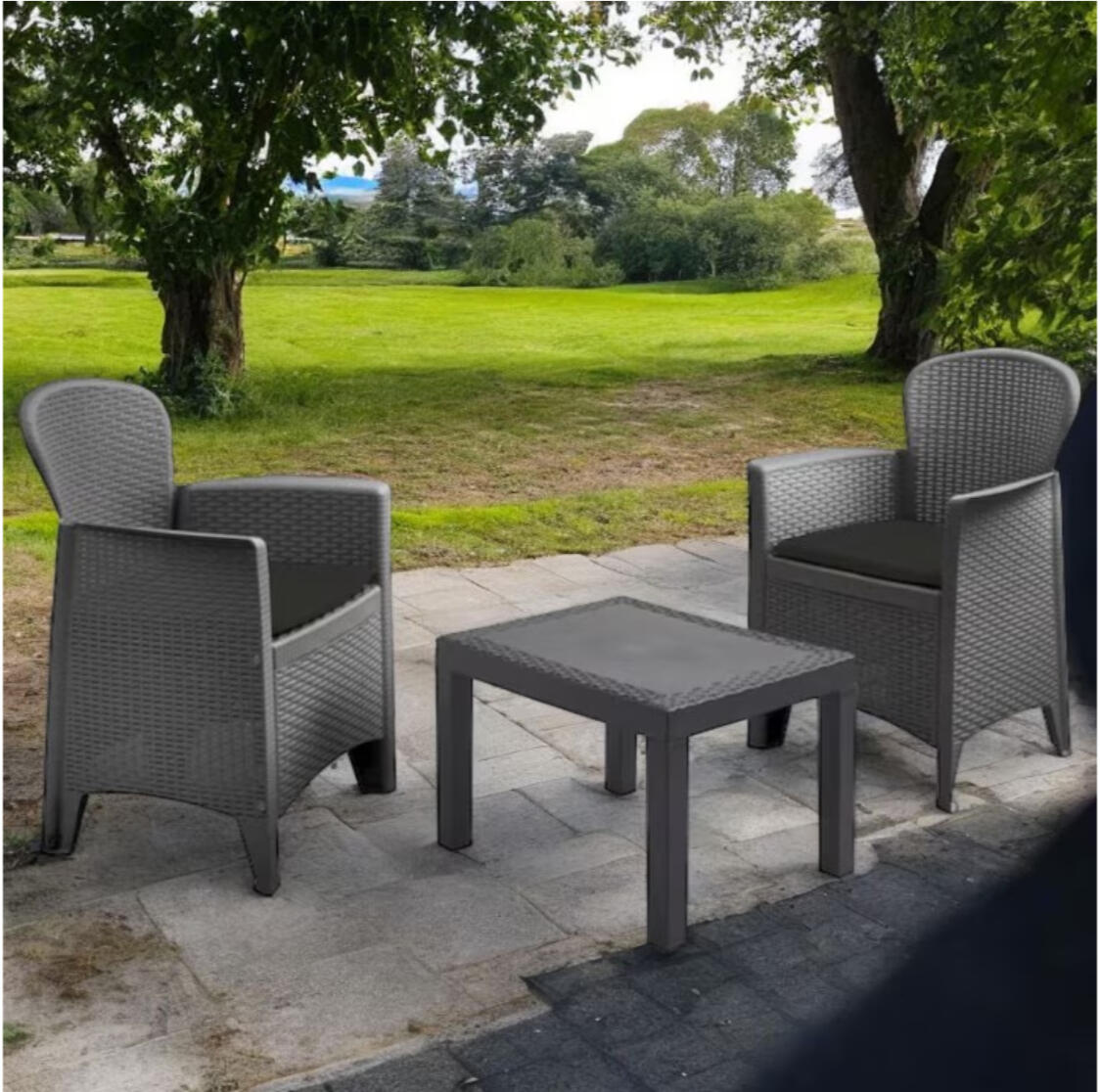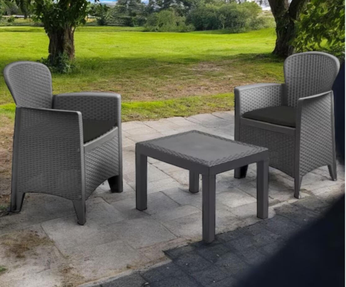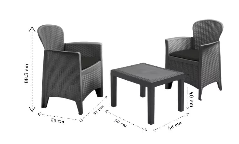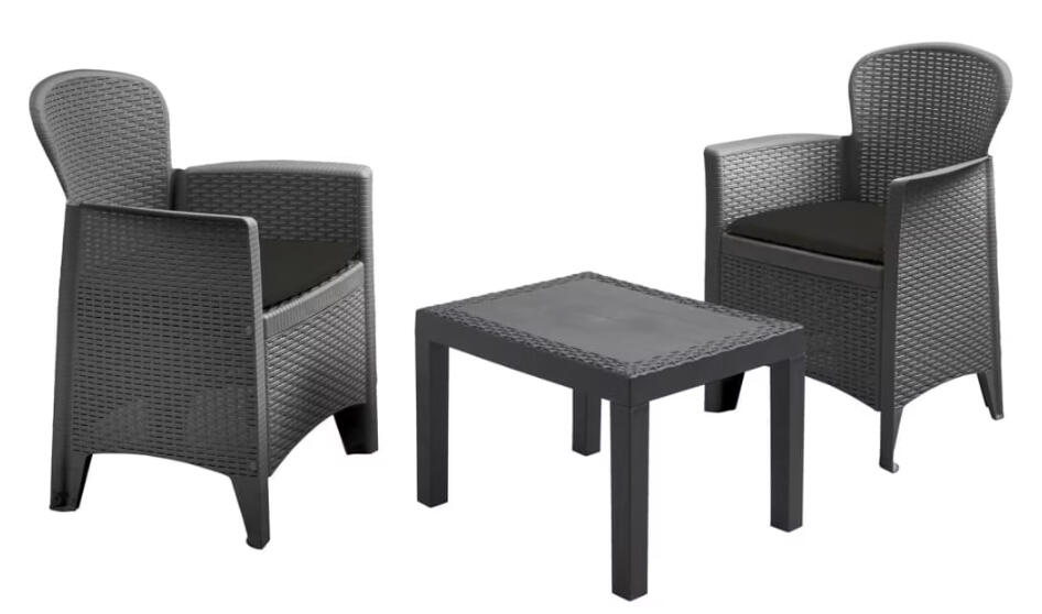 Set gradina/terasa, Progarden, AKITA, 3 piese, polipropilena, antracit, 2 scaune 59x57x85.5 cm, masa 59x46x40 cm, cu perne incluse